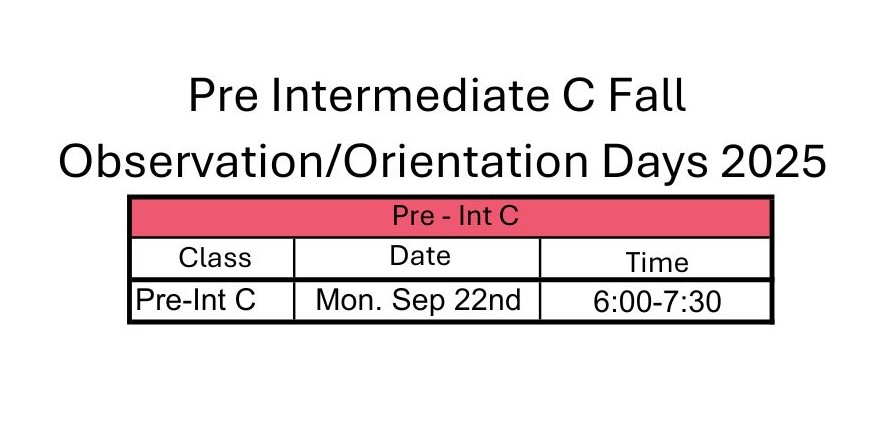 Please find your student’s designated observation class day and time and review the observation day protocols below.