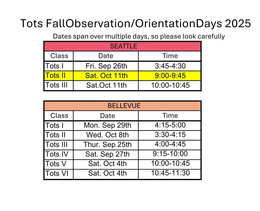 Please find your student’s designated observation class day and time and review the observation day protocols below.